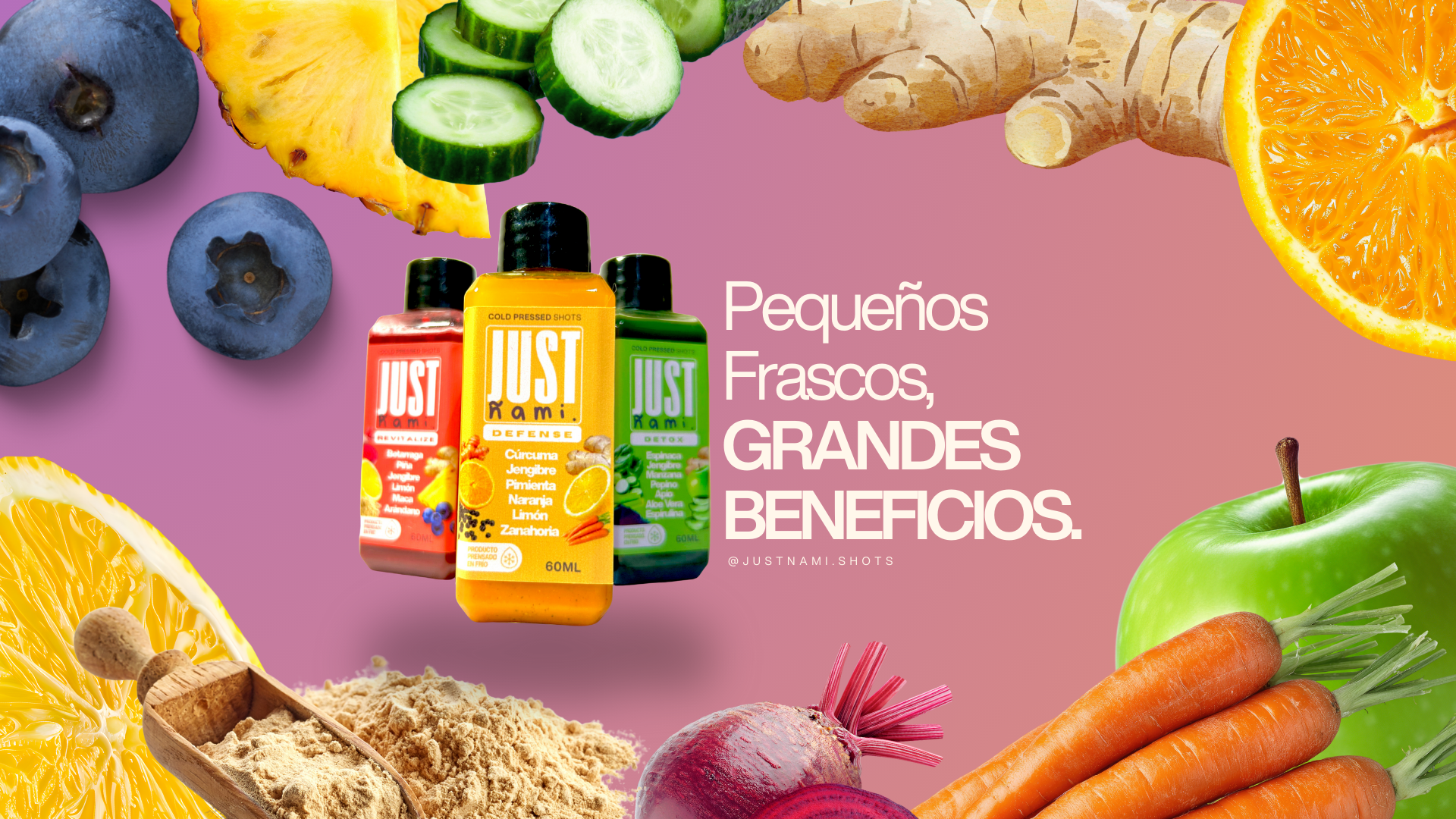 Somos JUST ÑAMI, y queremos compartir contigo los beneficios de los SHOTS Prensados en Frio. ¡Pruébalos y dale a tu cuerpo lo que realmente necesita!